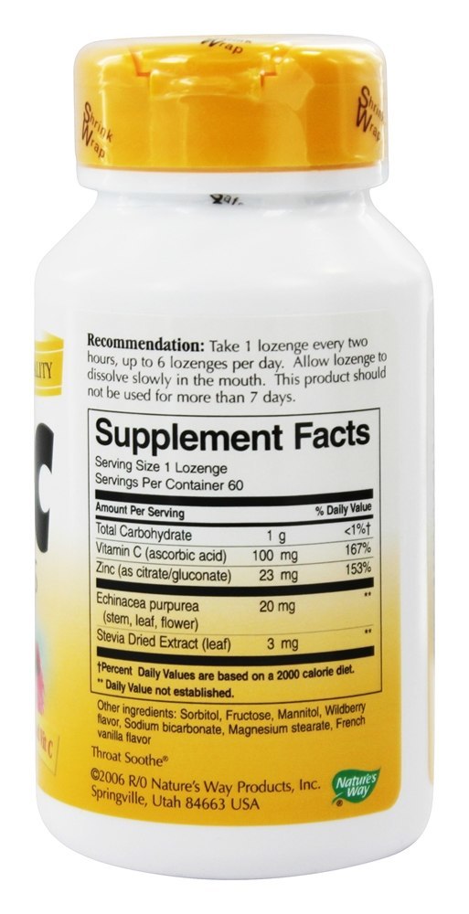 Nature’s Way pastilhas de zinco ajudam a proteger contra os radicais livres e são reconhecidos como um importante suporte nutricional durante a temporada de inverno. Nature’s Way Pastilhas de zinco também contêm Echinacea e Vitamina C. O zinco pode ajudar a encurtar o comprimento de um resfriado, se já estiver em vigor, ou impedir que um resfriado aconteça. Quanto mais baixo você pergunta? Levando Nature’s Way pastilhas de zinco cortaram o tempo que você tem seu frio pela metade!